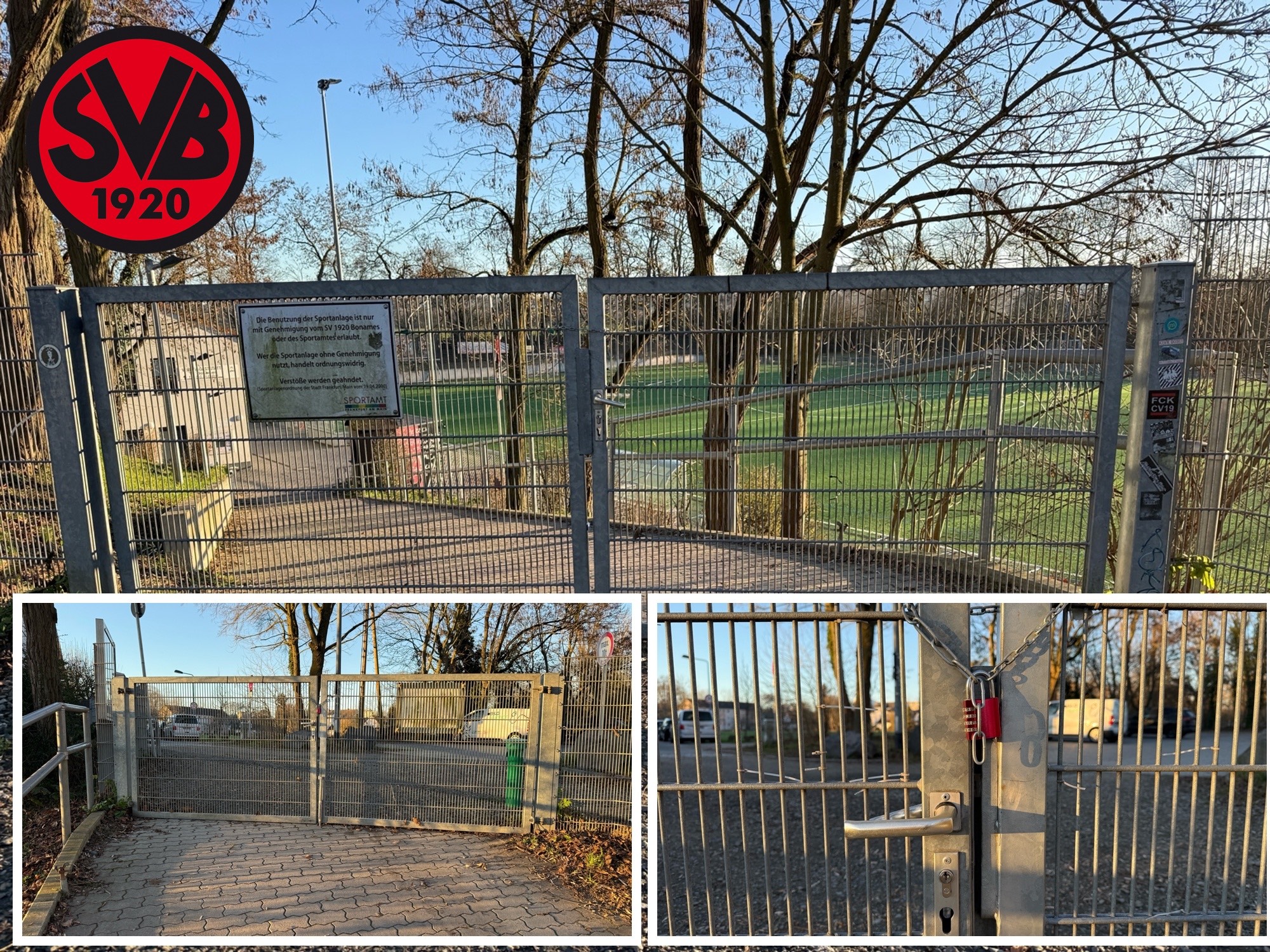 Wir möchten Euch mitteilen das das Haupttor nun mit einer Kette vorübergehend verschlossen wurde. Leider sind in den vergangenen Tagen mehrere Jugendliche/Kinder mit E-Scootern und Fahrrädern über unsere neu sanierte Sportanlage gefahren. Das ist natürlich ein no-go und um die Sportanlage zu schützen sieht sich der Verein nun dazu genötigt dies vorläufig zu unterbinden.