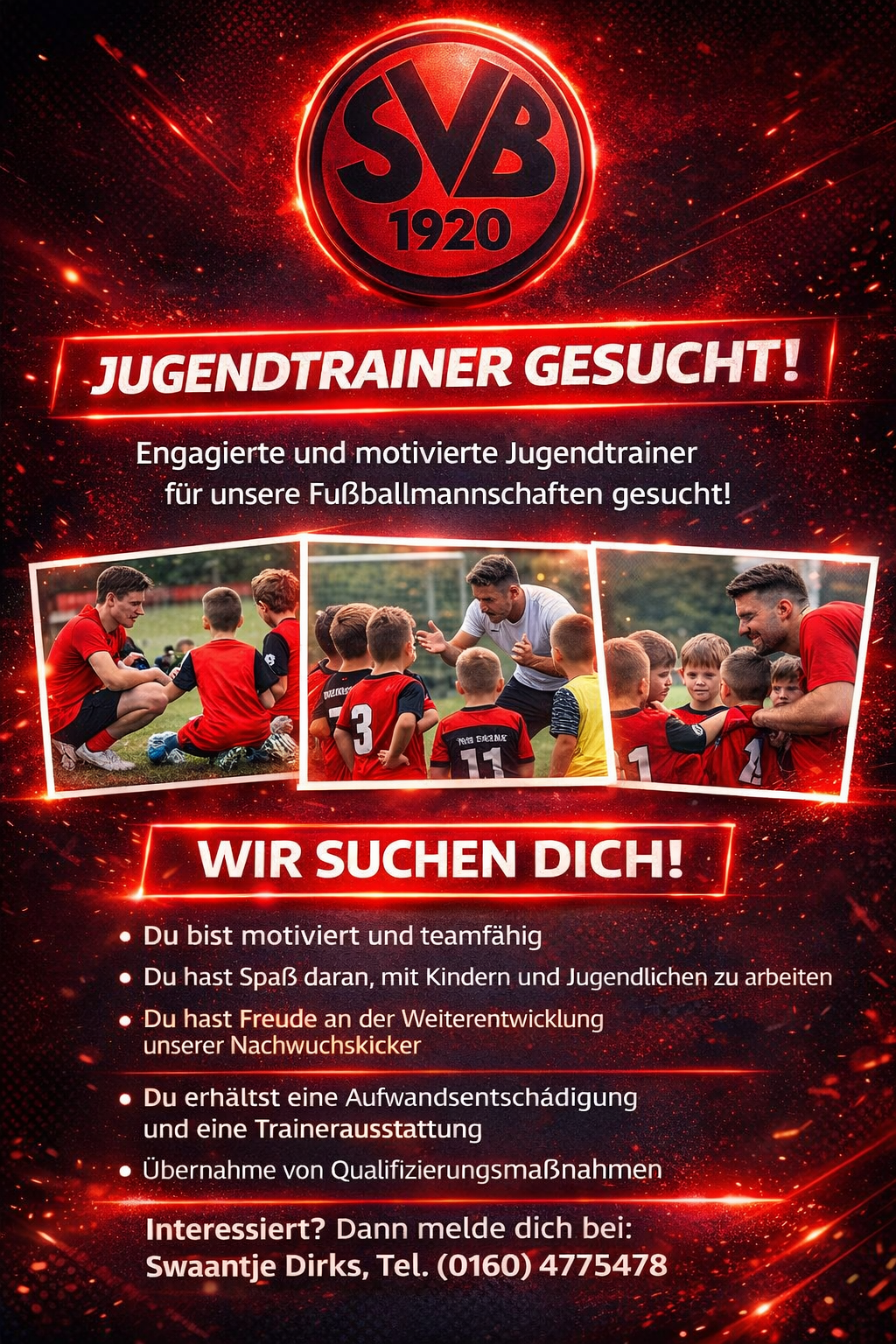 Als stetig wachsender Verein sind wir immer auf der Suche nach engagierten Jugendtrainerinnen und Jugendtrainern, die unsere Nachwuchskicker auf ihrem Weg begleiten und fördern.